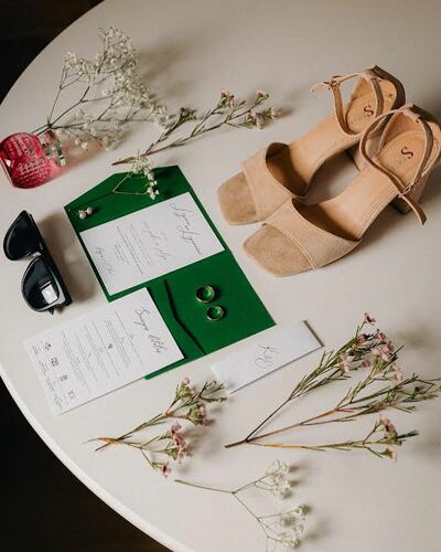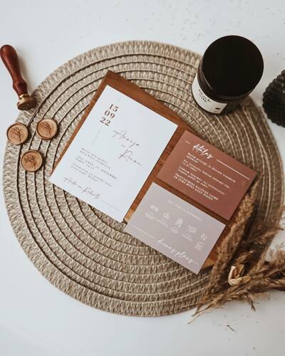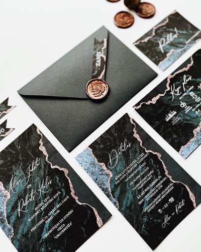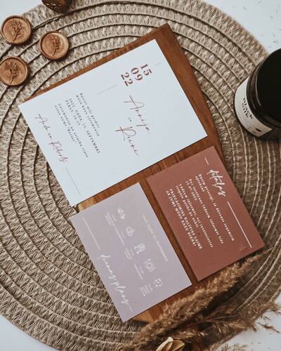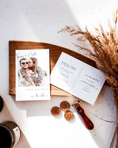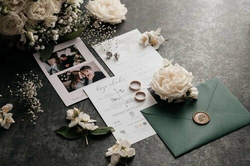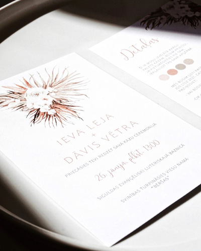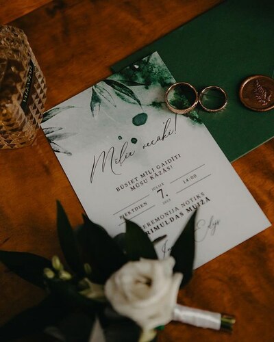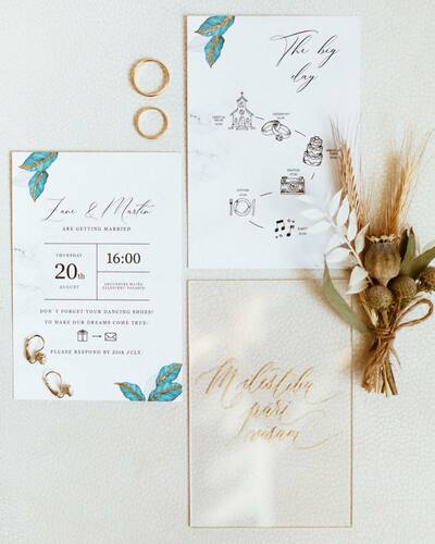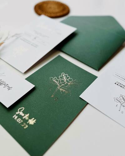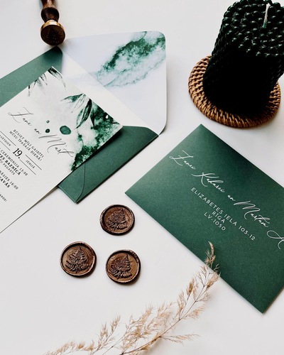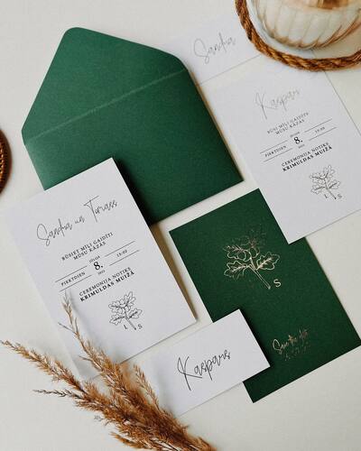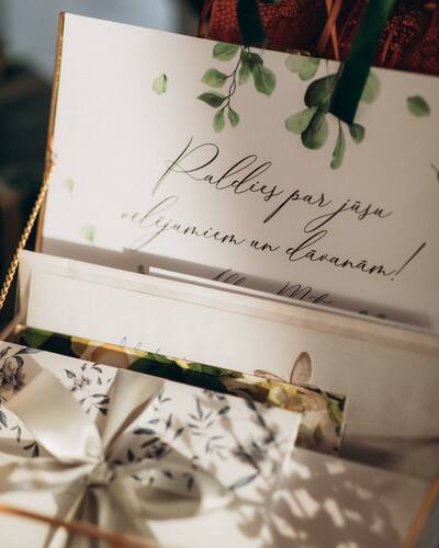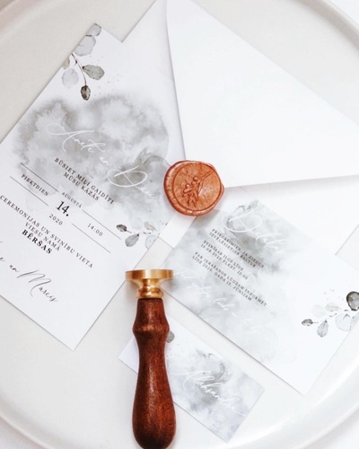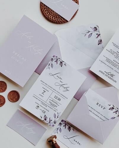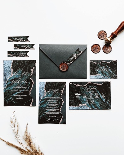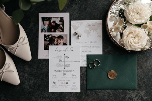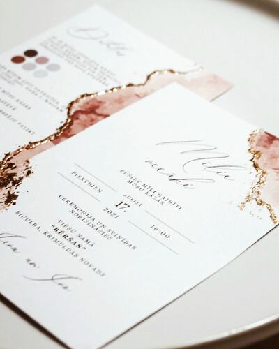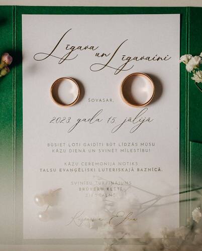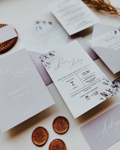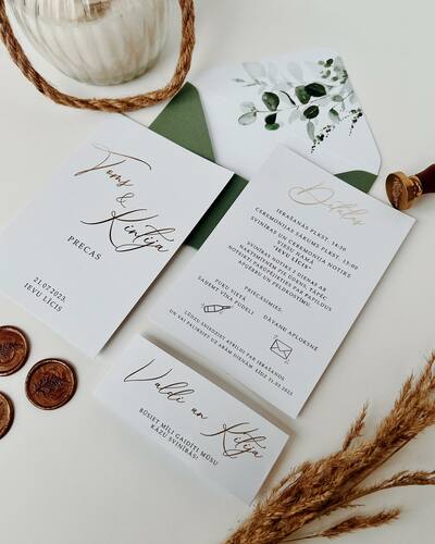 Kāzu ielūgumi, kartītes un dažādas papīrlietas.