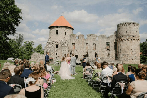 Mazās vecpilsētas bruģa šarms, krāšņie parki ar gulbju pāriem un Cēsu pils ir lielisks, nesamāksloti grezns fons skaistākajai dienai jaunlaulāto mūžā.